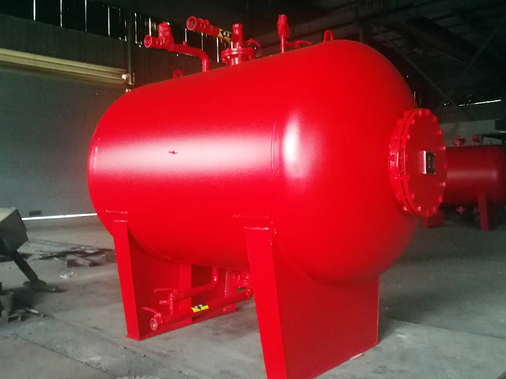 PHYM壓力式比例混合裝置(消防泡沫罐)  壓力式比例混合裝置是廣泛應(yīng)用于油庫(kù)、石油、化工、天然氣、電廠和、編織棉麻、碼頭、加油站、倉(cāng)儲(chǔ)、高層建筑、燃油鍋爐、地下停車(chē)場(chǎng)等場(chǎng)所的消防滅火設(shè)備,具有不占空間、利于分區(qū)保護(hù)的優(yōu)點(diǎn),所配置的泡沫比例混合器使其可應(yīng)用于多個(gè)消防分區(qū)?! 缁饎┻m用范圍廣,無(wú)論高、中、低倍數(shù)滅火劑均可使用,混合比例穩(wěn)定、準(zhǔn)確、可靠,可提供高質(zhì)量的泡沫混合液,使用時(shí)壓力降損小,噴射的泡沫混合液劑量大,穿透力強(qiáng),能迅速撲滅火災(zāi)?! 」摅w內(nèi)置膠囊隔膜貯存泡沫液,能有效節(jié)約泡沫液,大大降低滅火成本?! ‘a(chǎn)品分類(lèi):立式壓力式比例混合裝置,臥式壓力式比例混合裝置  型號(hào)規(guī)格:0.5立方-10立方(可定制)  參  數(shù):    執(zhí)行標(biāo)準(zhǔn):GB20031-2005  容  積:500L-10000L  泡沫液類(lèi)型:3% -- 6%  混合液流量范圍:16 - 48 L/S  工作壓力范圍:0.6 - 1.2 Mpa  壓力降不大于:0.16 Mpa
